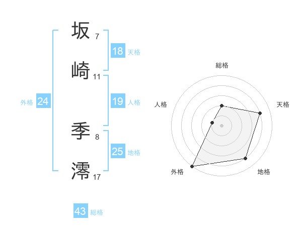 坂崎 季澪さんの外格は24画の5点!