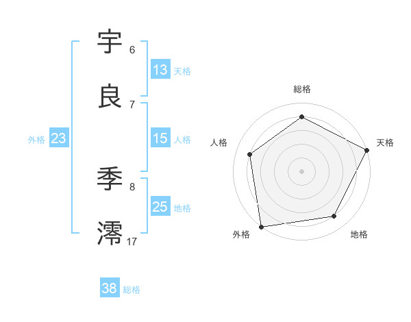 宇良 季澪さんの総格は38画の4点!