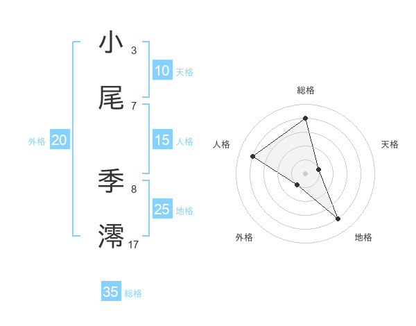 小尾 季澪さんを姓名の画数から五運を鑑定