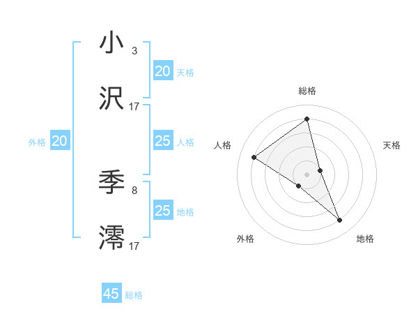 小沢 季澪さんの総格は45画の4点!