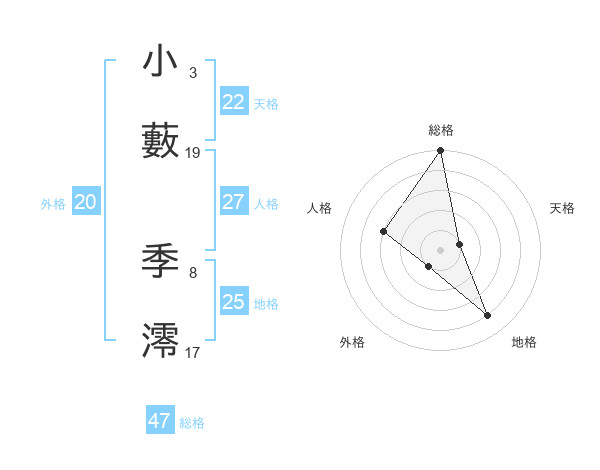 小藪 季澪さんの天格は22画の1点!