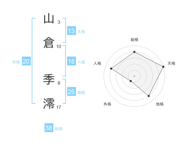 山倉 季澪さんの総格は38画の4点!