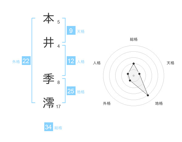 家系が持つ宿命的な運勢を表します。祖先から受け継いだ苗字ですので自分の力が及びません。家柄を象徴します。