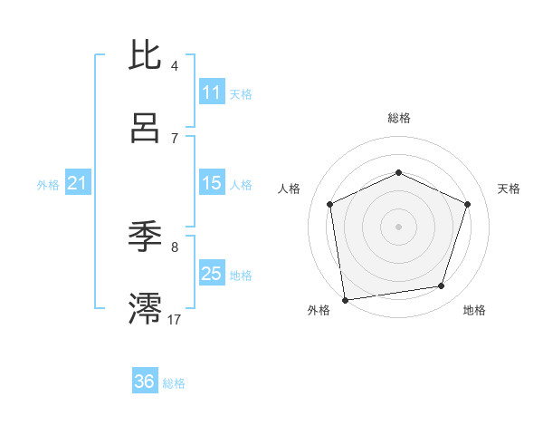 比呂 季澪さんの外格は21画の5点!