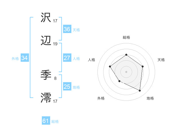 沢辺 季澪さんの総格は61画の3点!