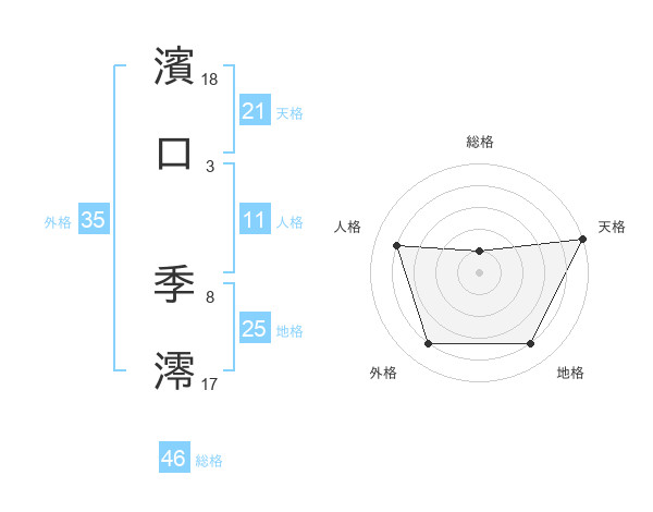 濱口 季澪さんの天格は21画の5点!