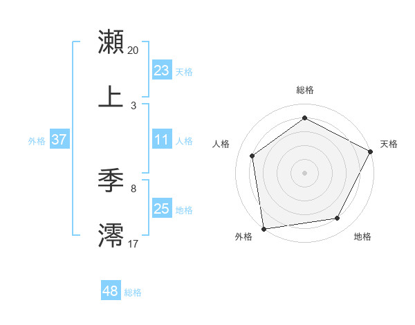 瀬上 季澪さんを姓名の画数から五運を鑑定