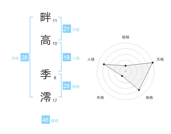 畔高 季澪さんの天格は21画の5点!