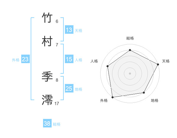 竹村 季澪さんの総格は38画の4点!
