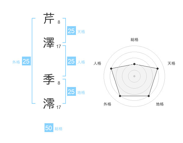 芹澤 季澪さんの総格は50画の2点!