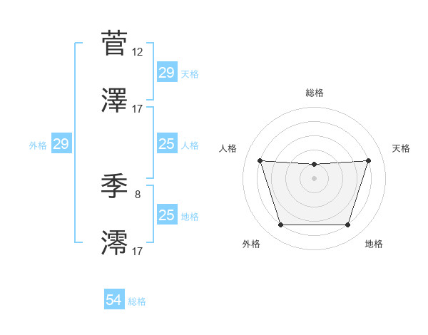 菅澤 季澪さんの天格は29画の4点!