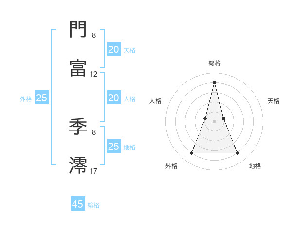 家系が持つ宿命的な運勢を表します。祖先から受け継いだ苗字ですので自分の力が及びません。家柄を象徴します。
