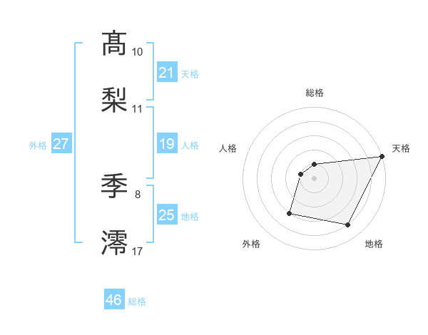 髙梨 季澪さんの天格は21画の5点!