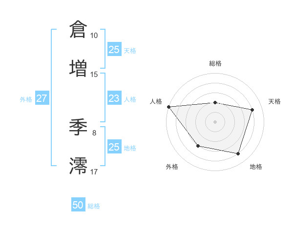 倉増 季澪さんを姓名の画数から五運を鑑定