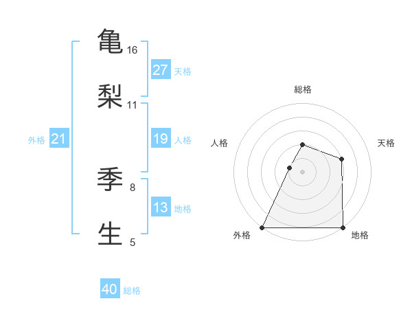 亀梨 季生さんの外格は21画の5点!