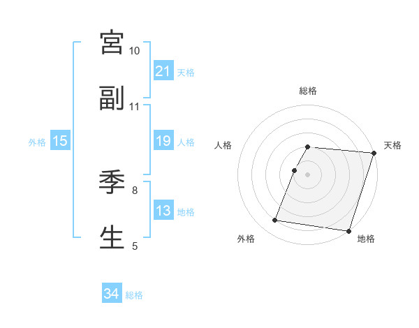 宮副 季生さんの天格は21画の5点!
