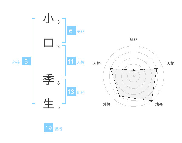 小口 季生さんの地格は13画の5点!