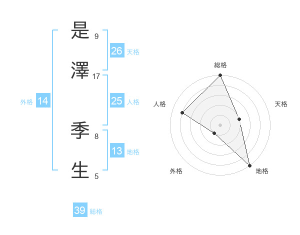 家系が持つ宿命的な運勢を表します。祖先から受け継いだ苗字ですので自分の力が及びません。家柄を象徴します。