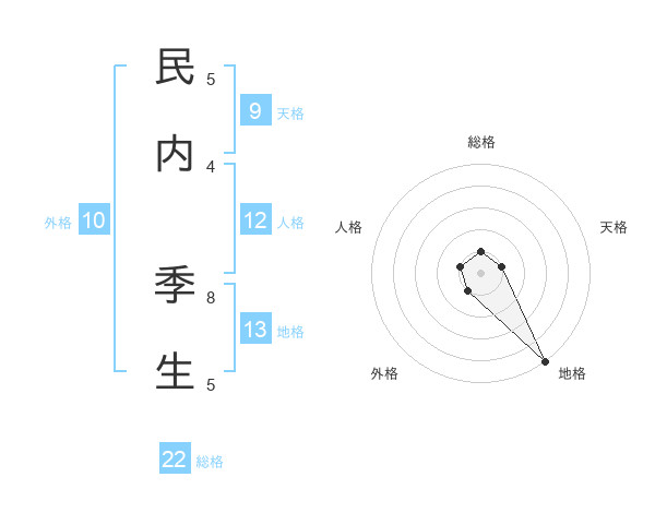民内 季生さんの地格は13画の5点!