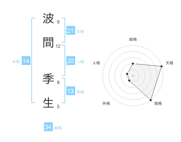 波間 季生さんの天格は21画の5点!
