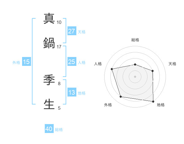 真鍋 季生さんを姓名の画数から五運を鑑定