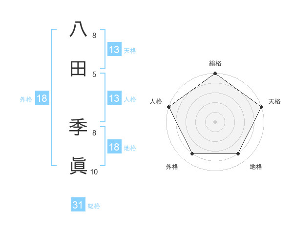 八田 季眞さんの総格は31画の5点!