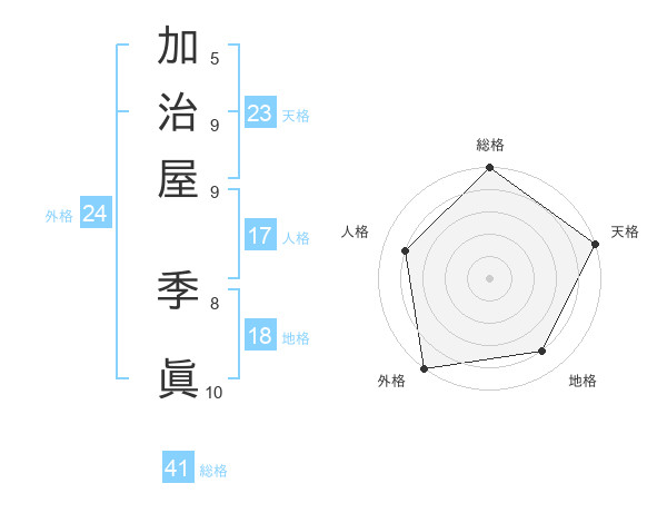 加治屋 季眞さんを姓名の画数から五運を鑑定