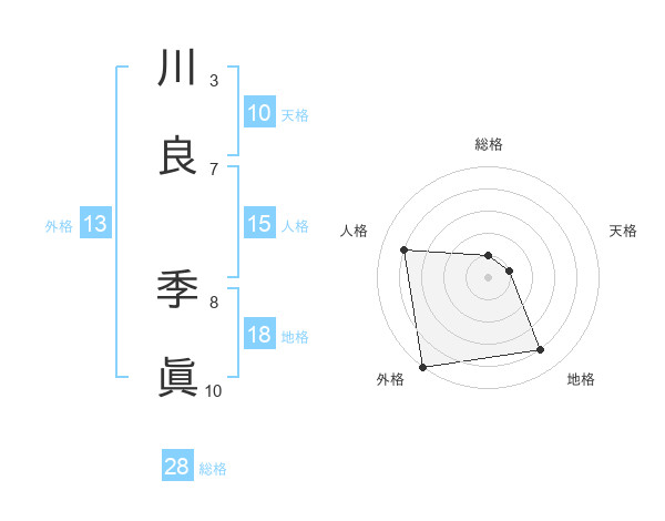 川良 季眞さんの総格は28画の1点!