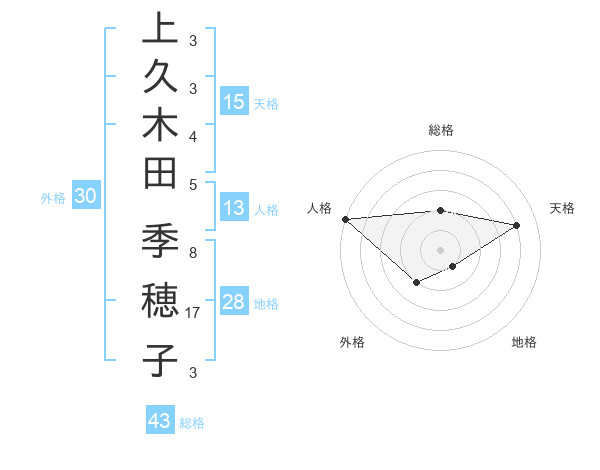 上久木田 季穂子さんを姓名の画数から五運を鑑定