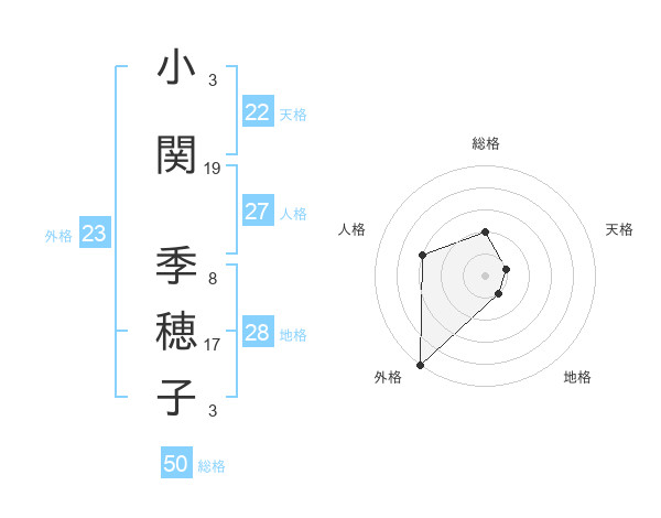 小関 季穂子さんを姓名の画数から五運を鑑定