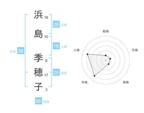 浜島 季穂子さんの外格は38画の4点!