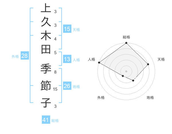 上久木田 季節子さんの天格は15画の4点!