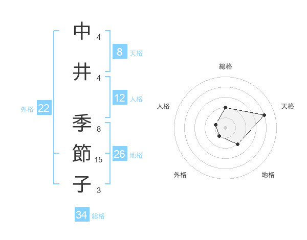 中井 季節子さんの天格は8画の4点!