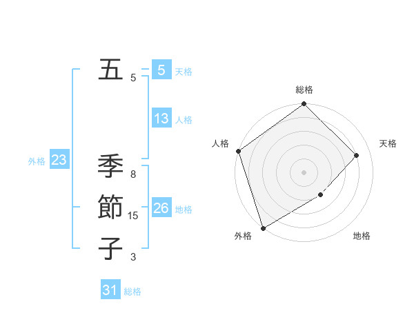 五 季節子さんの総格は31画の5点!