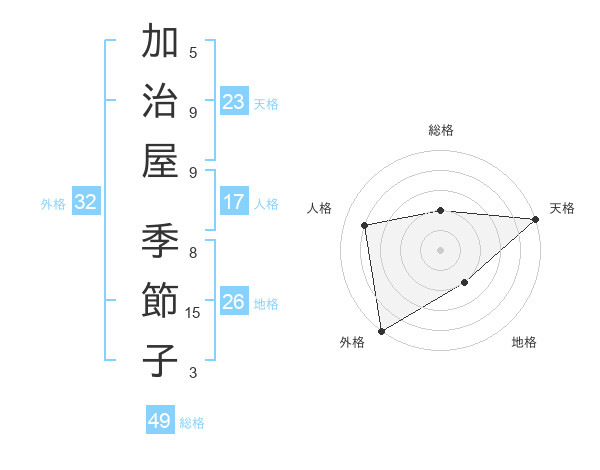 加治屋 季節子さんを姓名の画数から五運を鑑定