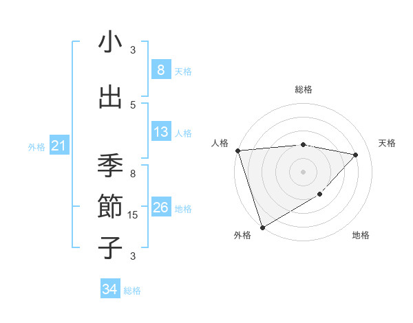 小出 季節子さんの天格は8画の4点!