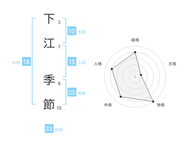 下江 季節さんの総格は33画の4点!