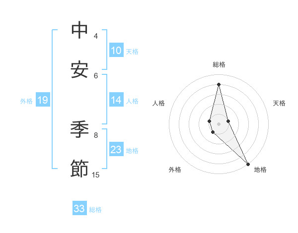 中安 季節さんの総格は33画の4点!