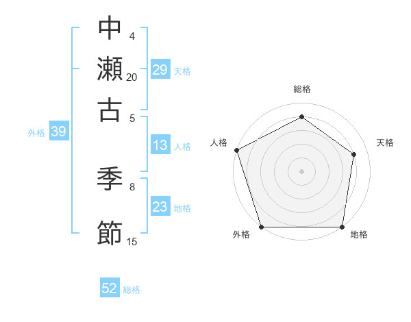 中瀬古 季節さんを姓名の画数から五運を鑑定