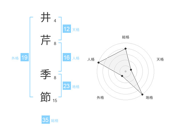 井芹 季節さんの総格は35画の4点!