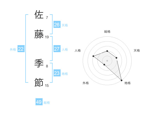 佐藤 季節さんを姓名の画数から五運を鑑定