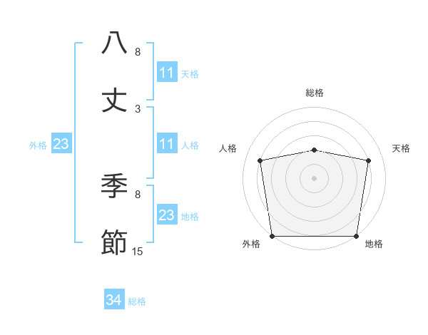 八丈 季節さんの外格は23画の5点!
