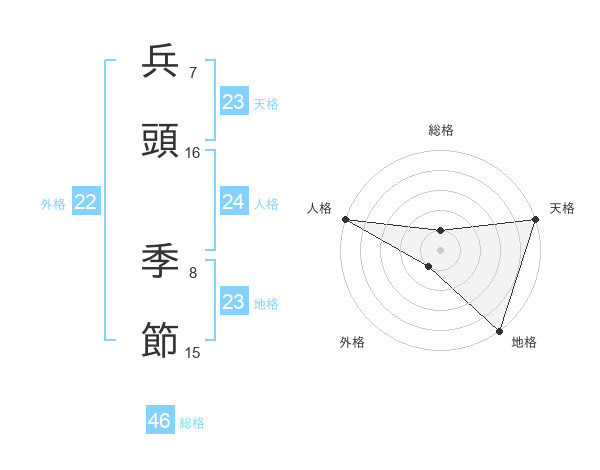 兵頭 季節さんの天格は23画の5点!