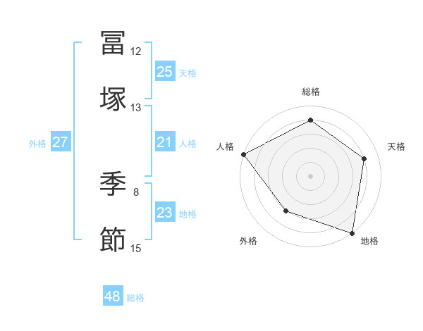 冨塚 季節さんの総格は48画の4点!