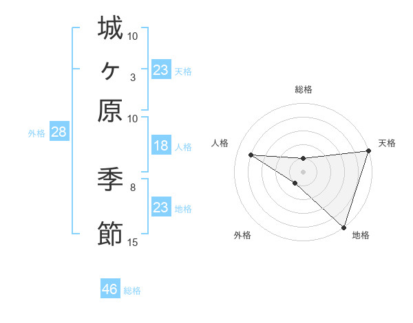 城ヶ原 季節さんの天格は23画の5点!