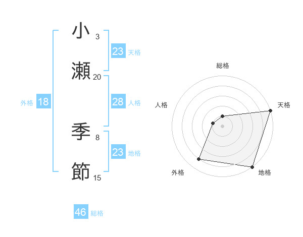 小瀬 季節さんを姓名の画数から五運を鑑定