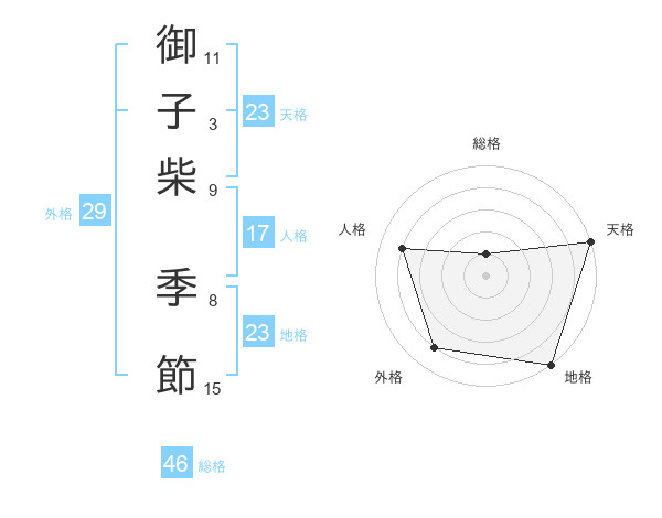 御子柴 季節さんを姓名の画数から五運を鑑定