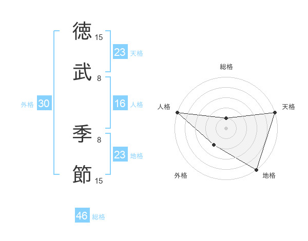 徳武 季節さんの天格は23画の5点!