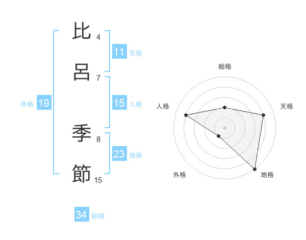 比呂 季節さんの総格は34画の2点!