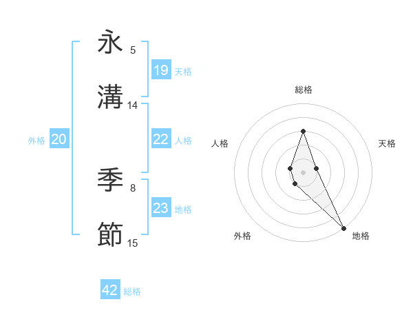 永溝 季節さんの総格は42画の3点!